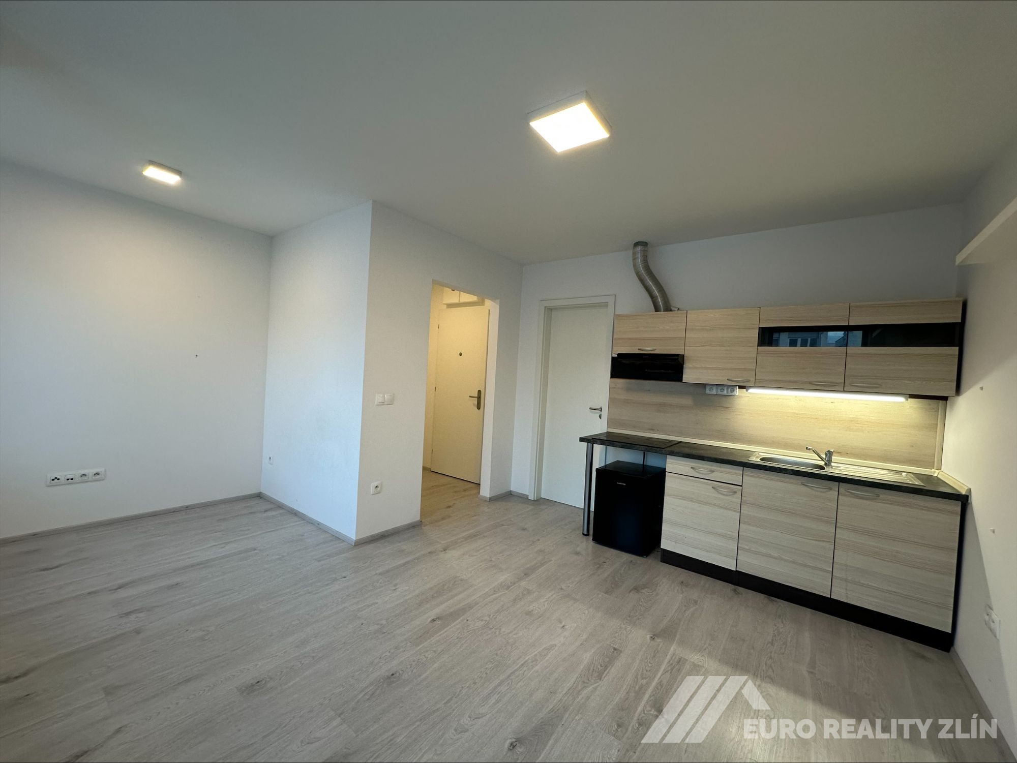 Světlý byt vymezený v 1.patře, orientovaný na západní stranu, tvoří: vstupní chodba s prostornou skříní, obývací pokoj s kuchyňským koutem a koupelna se sprchovým koutem a toaletou. V bytě je kuchyňská linka včetně vestavěných spotřebičů (varná deska, digestoř, lednice s mrazákem). Rozvod internetu a televizního digitálního signálu. Byt není vybaven. Byt volný od 01.02.2026.