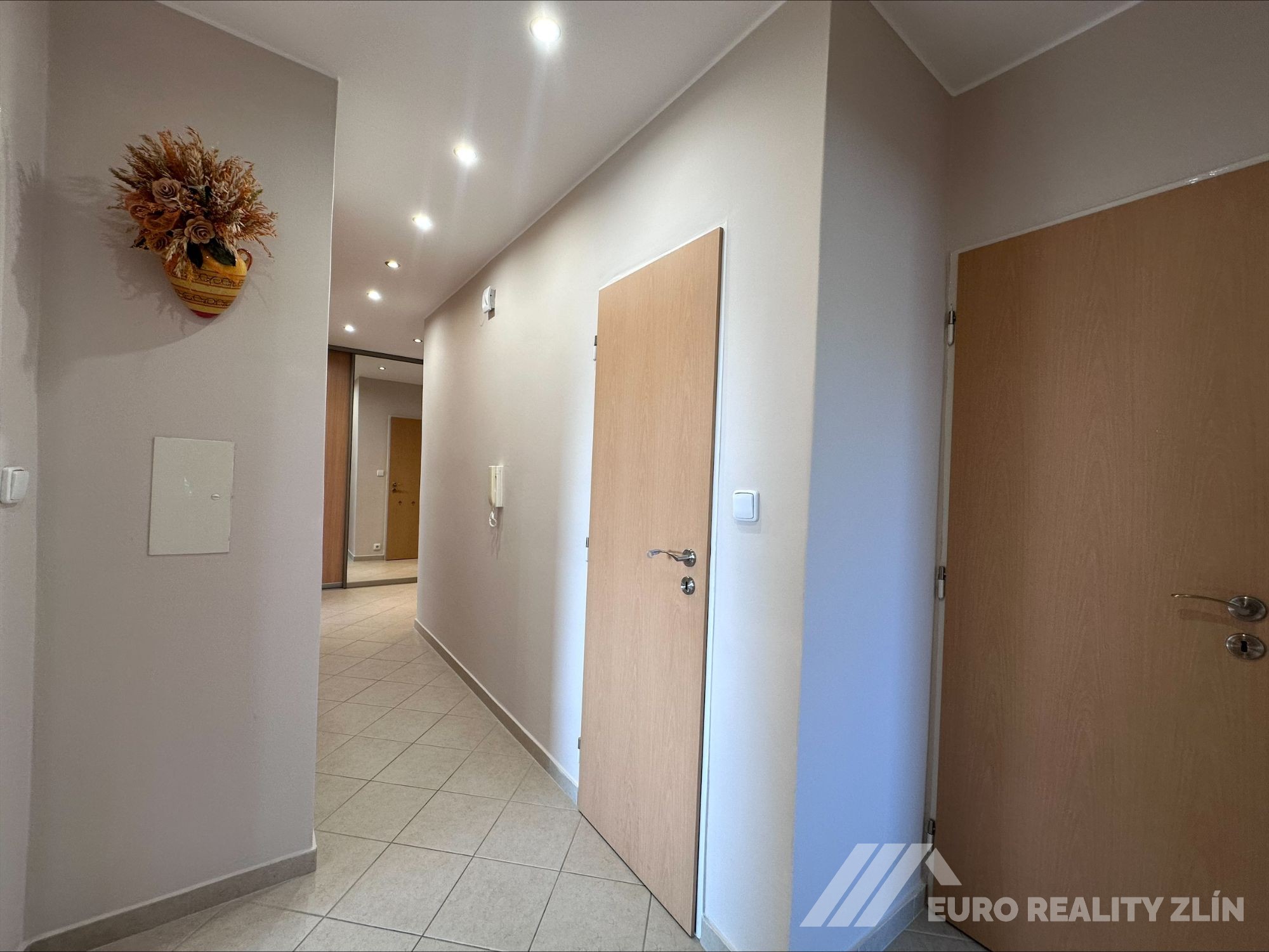 Interiér tvoří: kuchyň, 3x pokoj, obývací pokoj a koupelna, toaleta zvlášť. Bytová jednotka se nabízí nezařízená, k dispozici jsou pouze vestavěné skříně velkorysým úložným prostorem. Do bytu se vchází chodbou, která propojuje kuchyni a pokoje, které jsou neprůchozí: kuchyňská linka je včetně spotřebičů - indukční deska, digestoř, integrovaná trouba a mikrovlnná trouba, lednice s mrazákem, myčka, Na podlaze je plovoucí podlaha, dálkové vytápění. K bytu náleží balkon a sklep kóje v suterénu domu. Nabízený byt je orientován na východní a západní stranu. Možnost připojení k internetu.