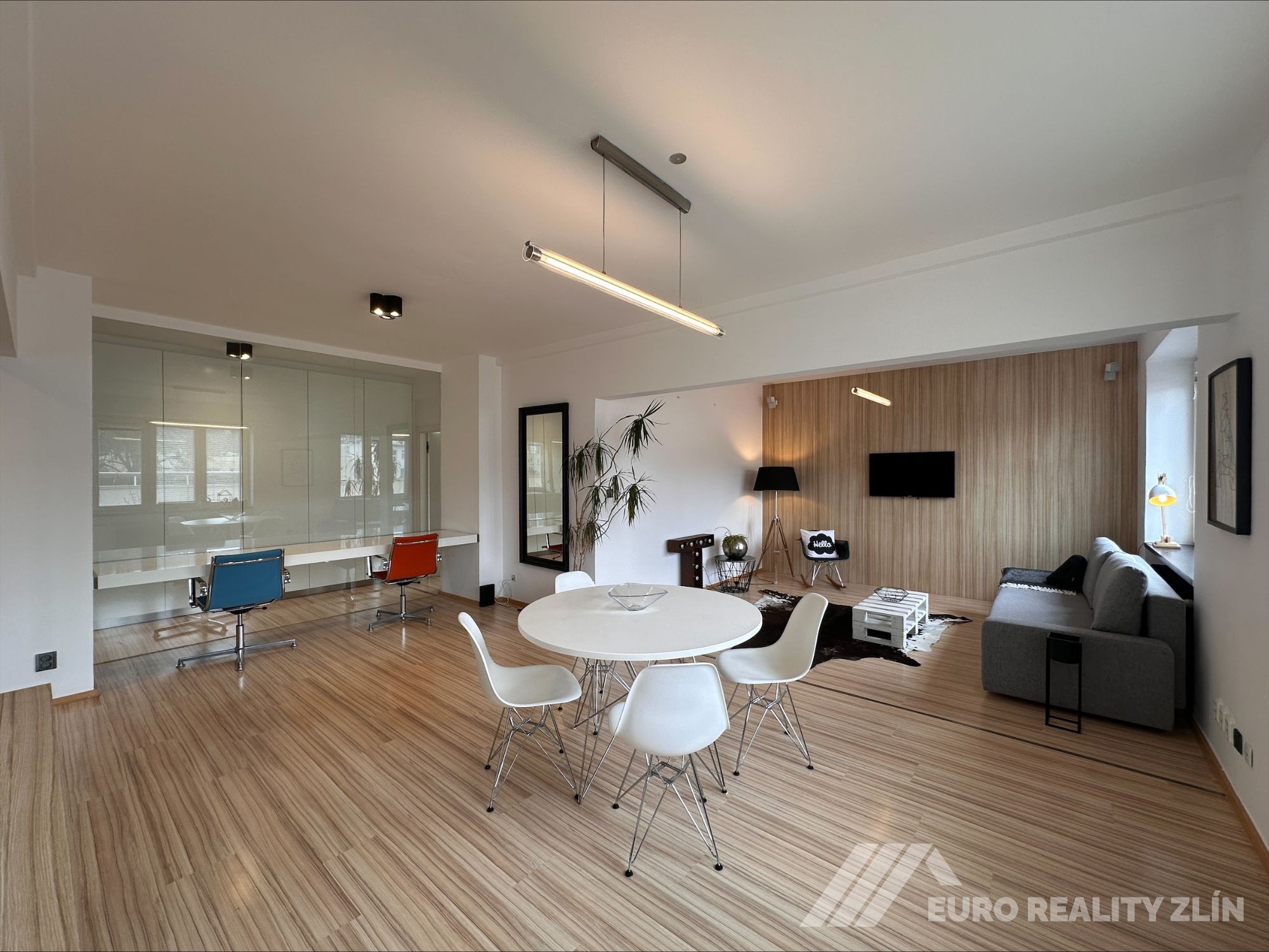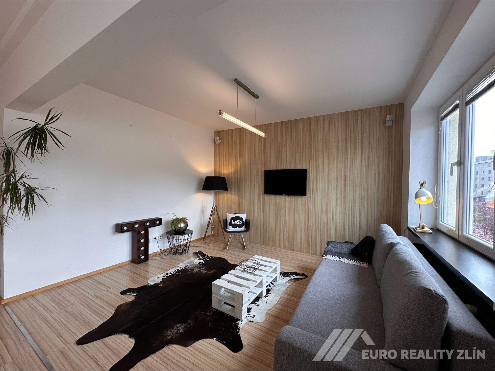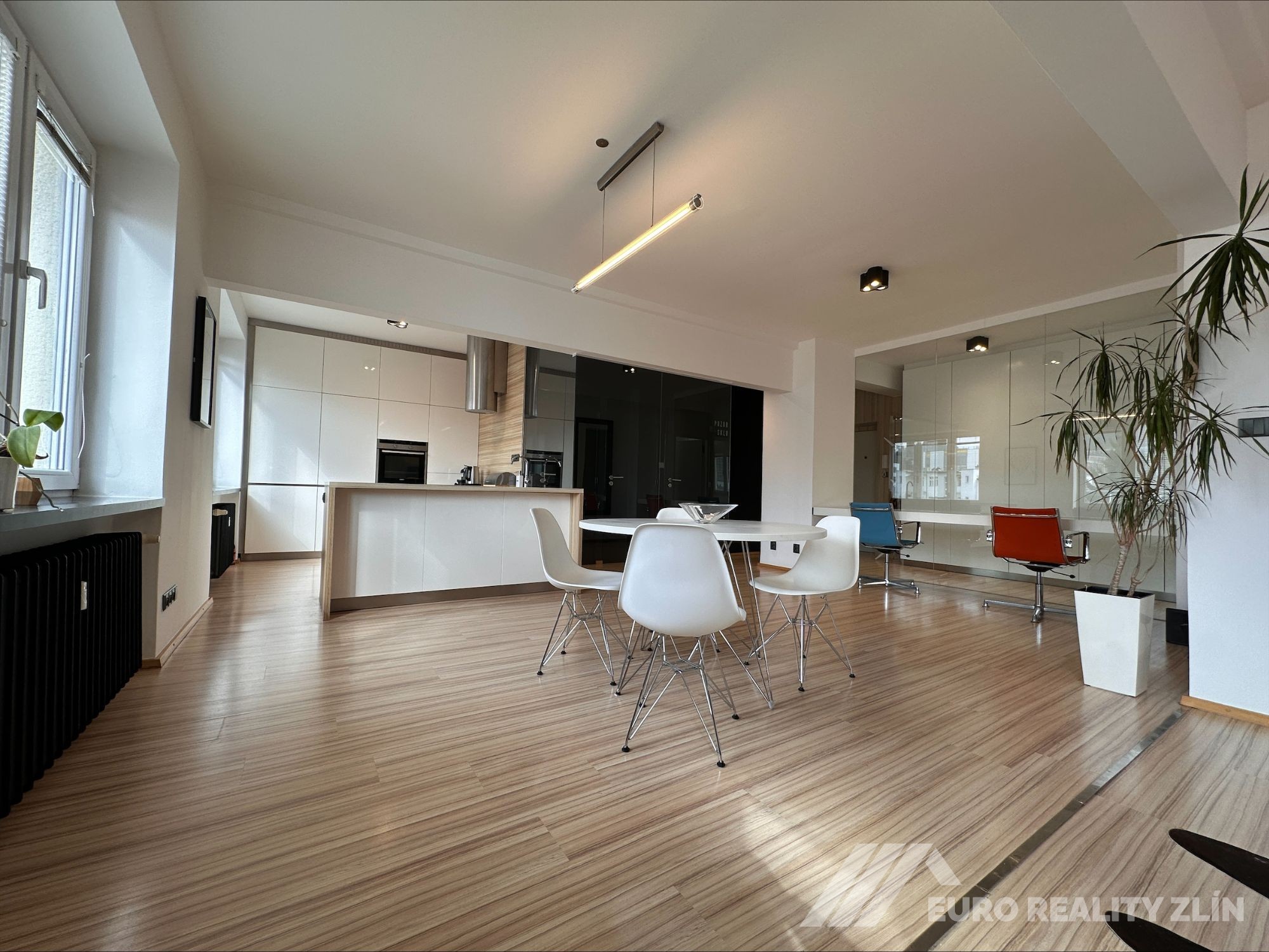 velkometrážní a nadstandardní byt 2+kk o rozloze 73 m², který se nachází v posledním patře bytového domu přímo v centru Zlína, na ulici Sadová.
