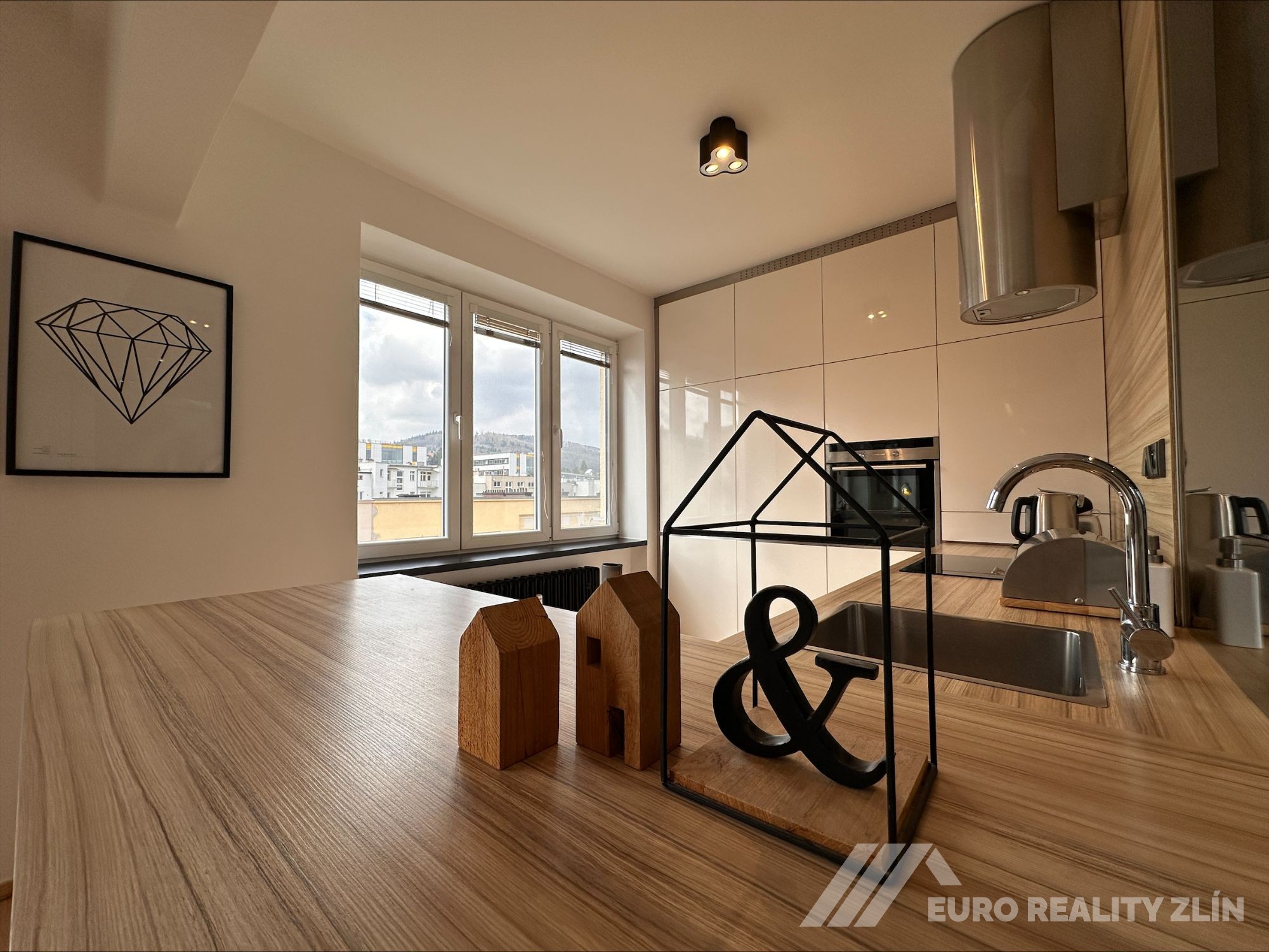 - moderní kuchyňská linka s vestavěnými spotřebiči