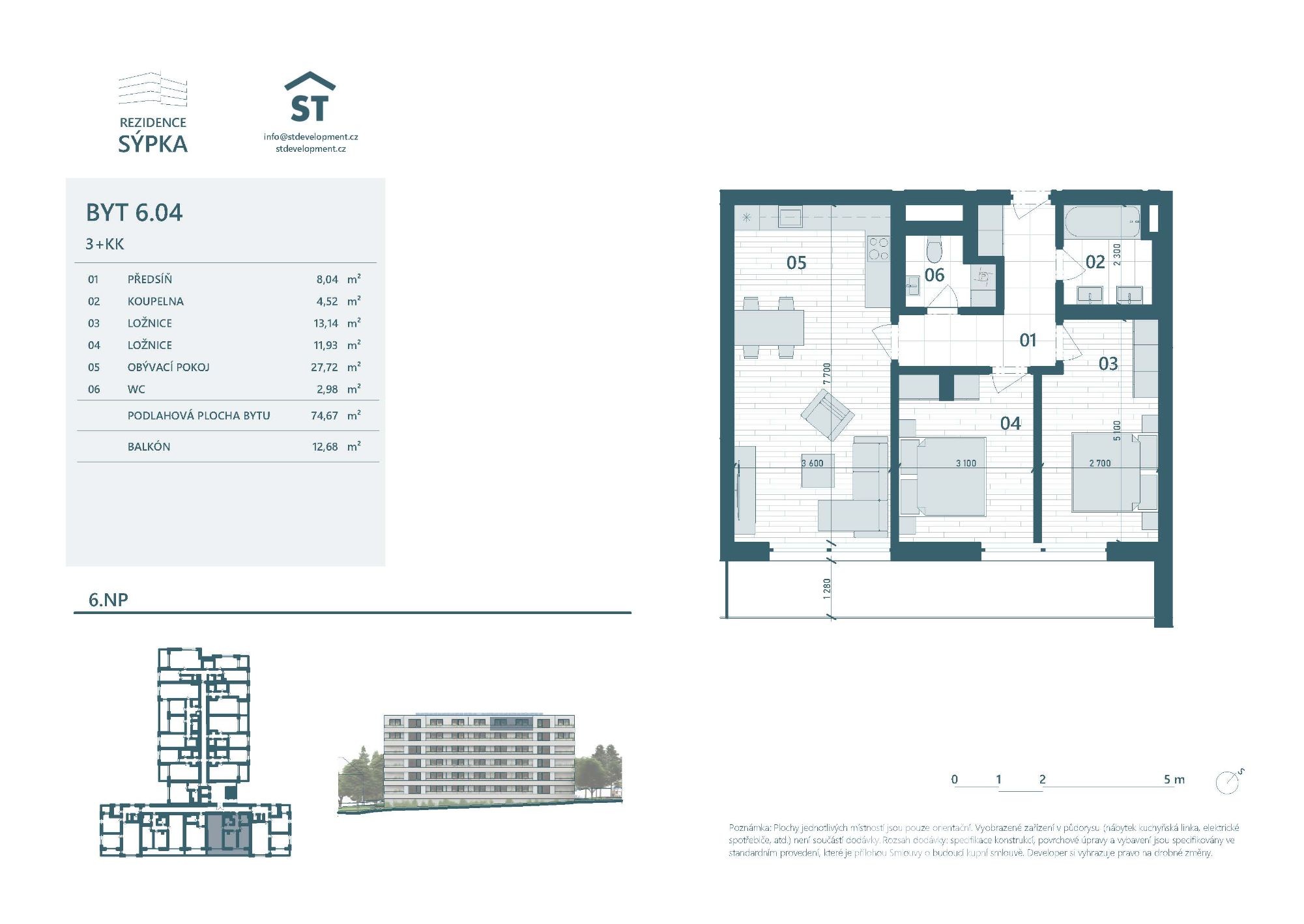 3+kk v 6. nadzemním podlaží připravovaného projektu